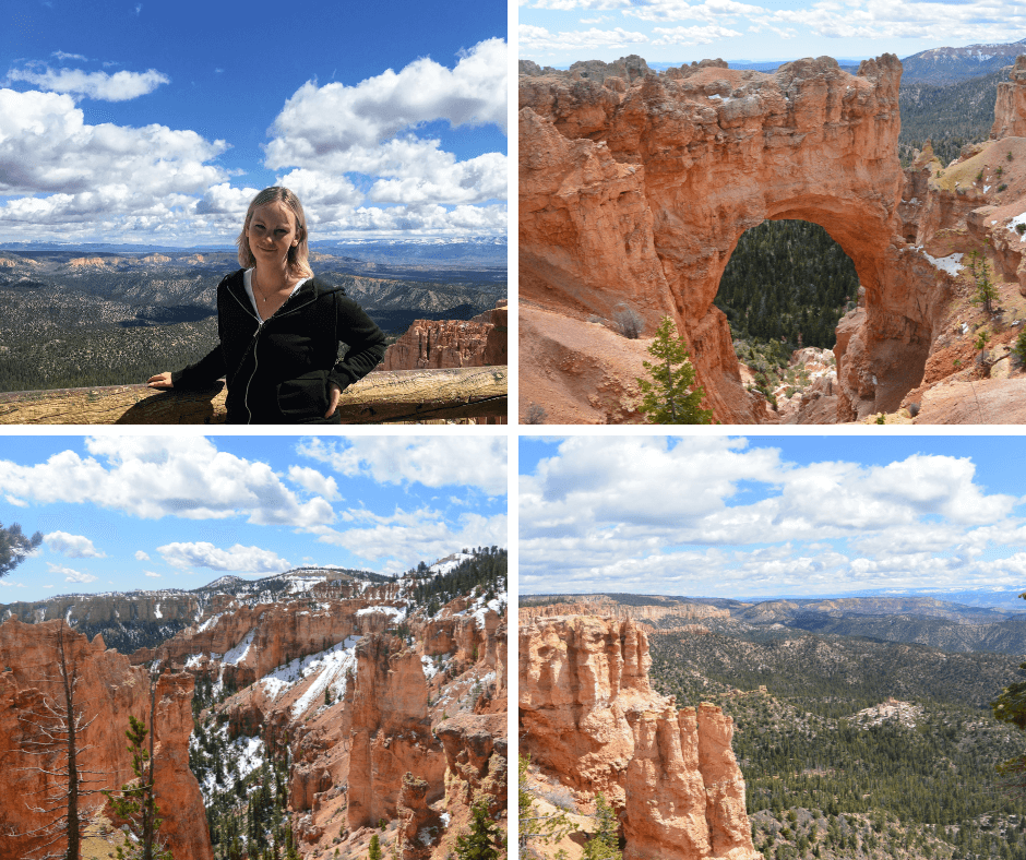 Bonustip: haal bij de ingang een routekaartje met alle stops en rij vervolgens door tot Rainbow Point, het laatste uitzichtpunt. Vanaf de ingang is dit ca. 30 min rijden. Op deze manier vermijd je de ergste drukte.