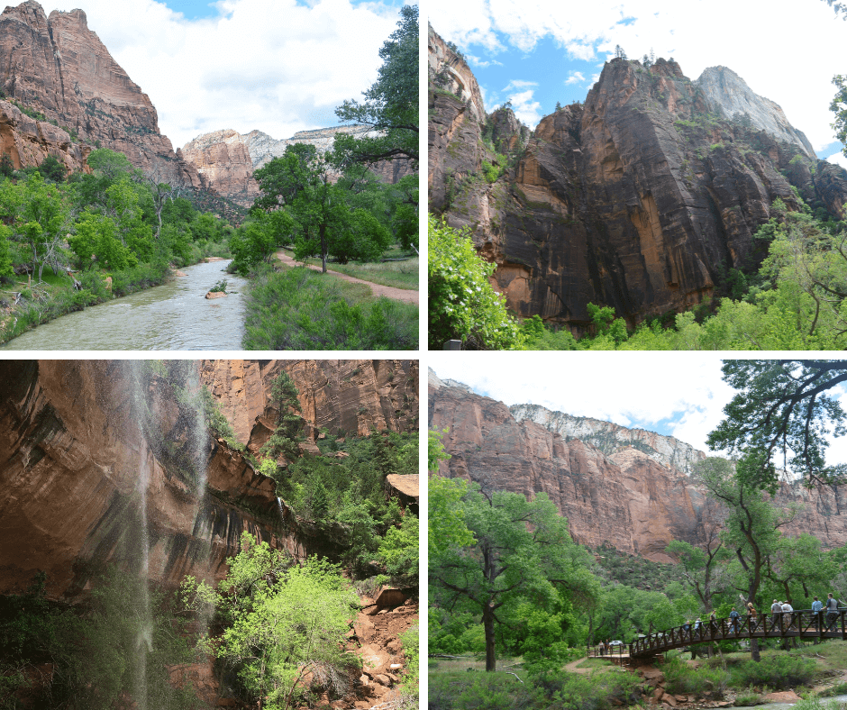 Een hele populaire stop in dit park zijn De Narrows. Toen ik er was, was de route niet bereikbaar i.v.m. vele regenval. Mocht je dit willen doen: ga naar de laatste stop (Temple of Sinawava) en start met de Riverside Walk. De Narrows liggen aan het einde. Het is het smalste gedeelte van Zion Canyon en wandelt door de rivierbedding. Je kunt zo ver wandelen als je zelf wilt/kunt, de wandeling is maximaal 16 km in totaal (heen en terug). Vraag voor je op pad gaat in het bezoekerscentrum of er kans is op flash floods + een wandelstok.